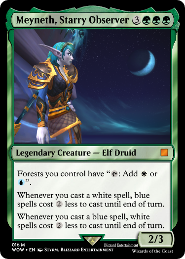 Meyneth suffered a majority of her life forced under her family's wishes, shoved into a life she didn't want. She only managed to break off after the Third War, when the Night Elves lost their immortality, and women were allowed to practice Druidism. From then on, Meyneth was able to follow her love of the night sky and nature; as well as fighting against any and all that would stop her from doing so.
